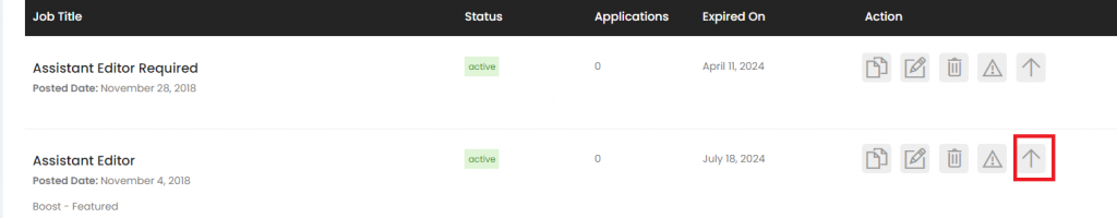 Prior to submitting a job for publication a you can select Boost for the job. This gives the job special priority placement (top of search results).